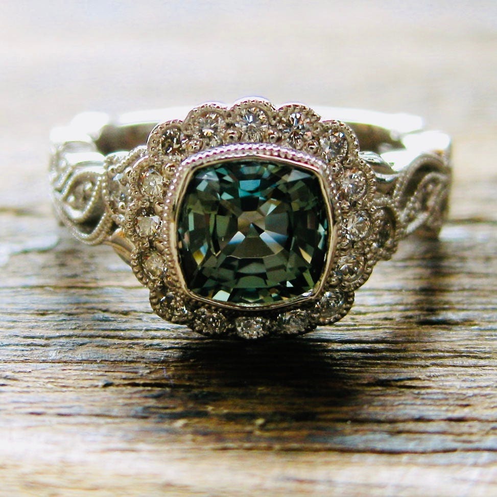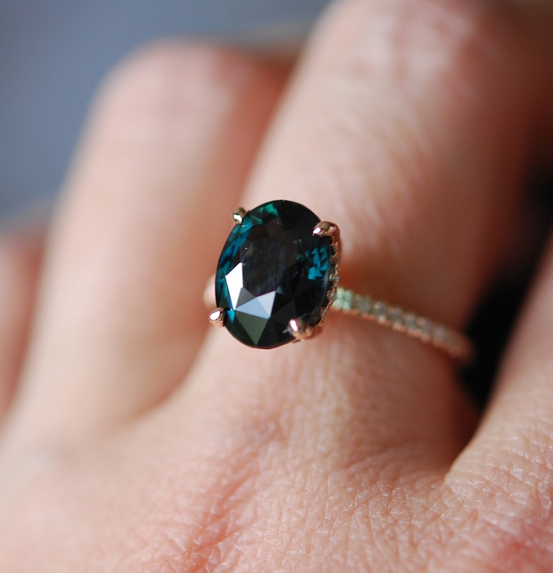 Green Sapphire And Diamond Engagement Ring - Custom Blue-green Sapphire And Diamond Engagement Ring ... / James allen blue sapphire oval cut halo engagement ring in 14k rose gold, $3,080, jamesallen.com.. Oval montana sapphire engagement ring, greenish blue sapphire ring, peacock teal sapphire wedding ring, september birthstone, rose gold ring. Peacock sapphire oval halo blue green diamond ring,engagement ring,girls ring,stone ring,valentine gift. It's most common color can be described as olive. It has been clawa precious metal prong used to hold a gemstone in place. French 18ct gold, sapphire & diamond bombe style ring.