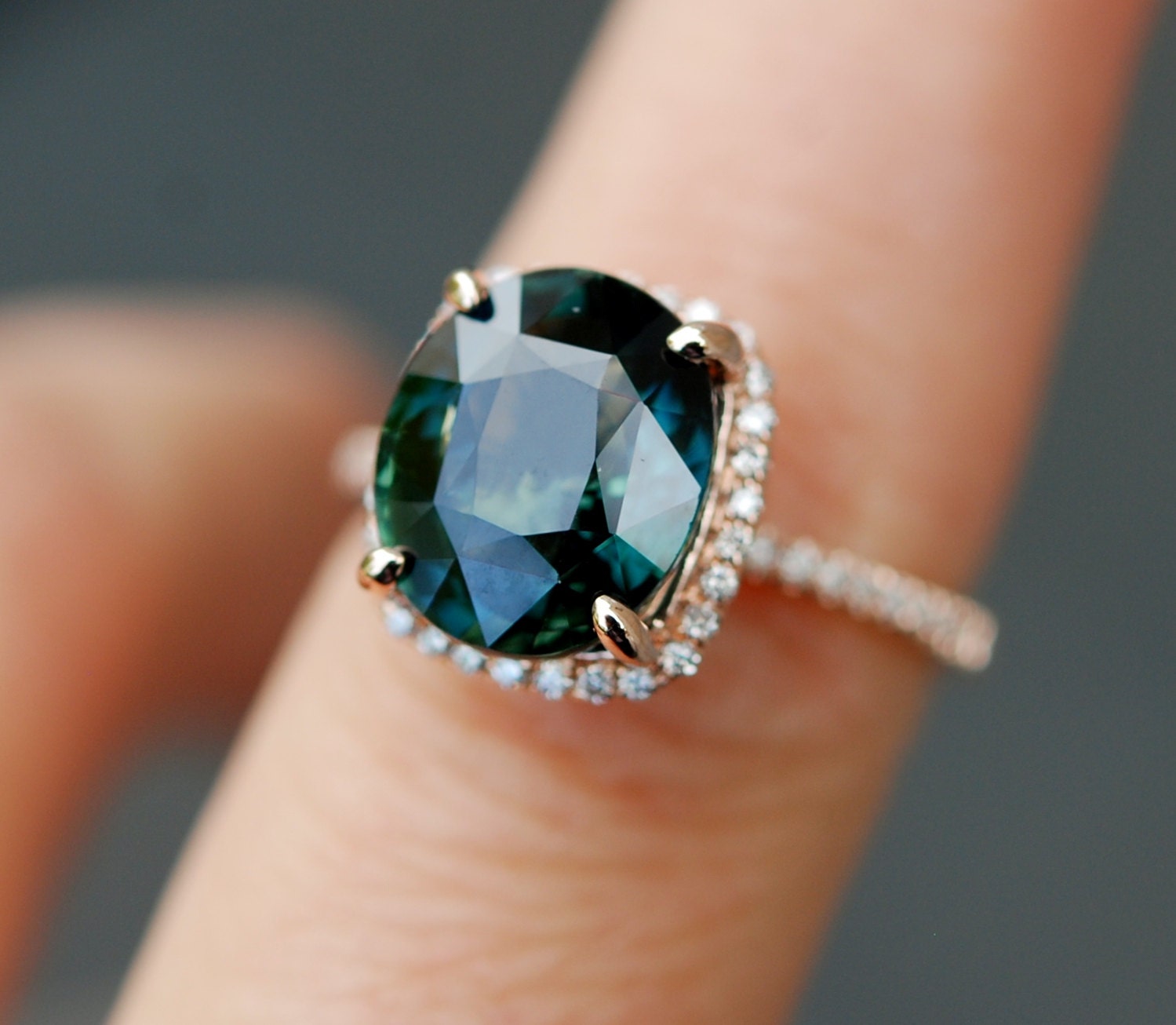 Green Sapphire And Diamond Engagement Ring - Custom Blue-green Sapphire And Diamond Engagement Ring ... / James allen blue sapphire oval cut halo engagement ring in 14k rose gold, $3,080, jamesallen.com.